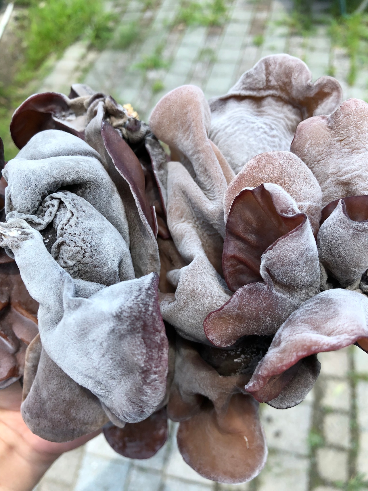 生のきくらげです。コリコリとした触感が楽しめ、クセも少なくいろいろな料理にお使いいただけます。約500gで1袋となっております。