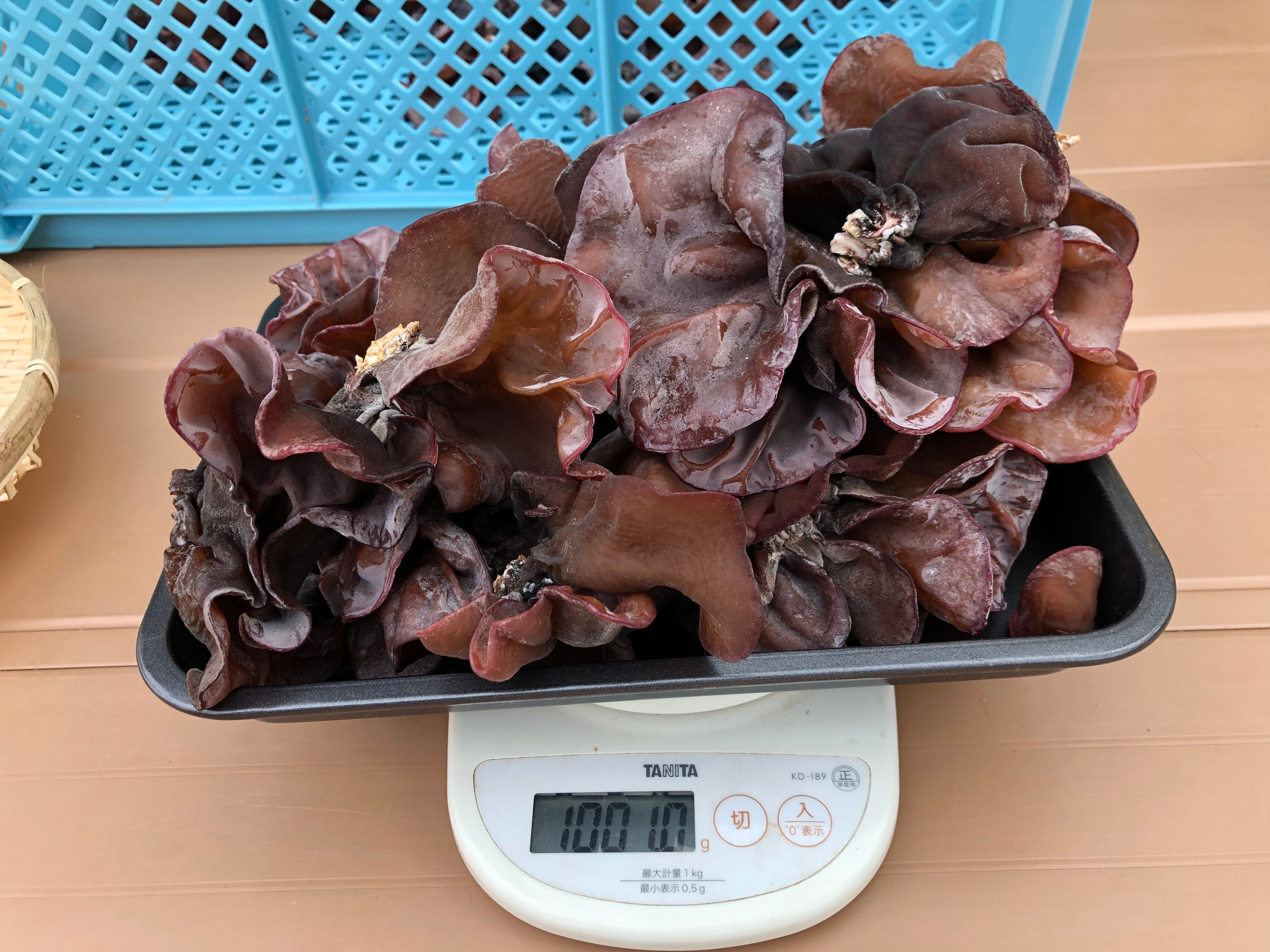生のきくらげです。コリコリとした触感が楽しめ、クセも少なくいろいろな料理にお使いいただけます。約1㎏で1袋となっております。